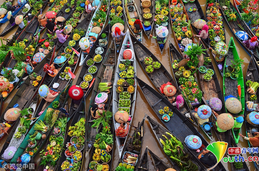 2018年11月5日訊(具體拍攝時(shí)間不詳),印度尼西亞班加爾地區(qū),專(zhuān)業(yè)攝影師Saipullah拍攝的洛克班坦(Lok Baintan)水上集市。 圖片來(lái)源:視覺(jué)中國(guó)