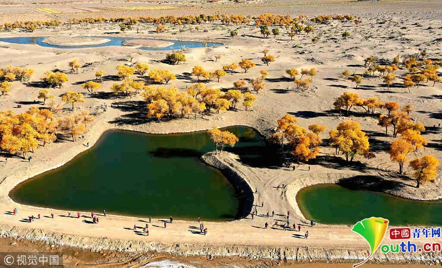 中國青年網(wǎng)北京10月9日電 2018年10月7日至8日,內(nèi)蒙古自治區(qū)阿拉善盟額濟納旗,地處巴丹吉林沙漠。額濟納河兩岸壯觀的胡楊林堪稱大漠的一顆綠色明珠,每年深秋時節(jié)的第一場秋霜過后,大片的胡楊樹葉由綠變黃,一眼望去,陽光下金色的樹葉襯著湛藍的天空于風中婆娑起舞,鮮明的影調,亮麗的色彩,令人流連忘返。