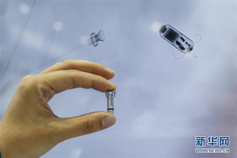 11月6日,美國(guó)美敦力公司工作人員展示全球最小的心臟起搏器。它也是全球首款無導(dǎo)線心臟起搏器,體積僅有膠囊大小,重量?jī)H2克。 新華社記者 張玉薇 攝