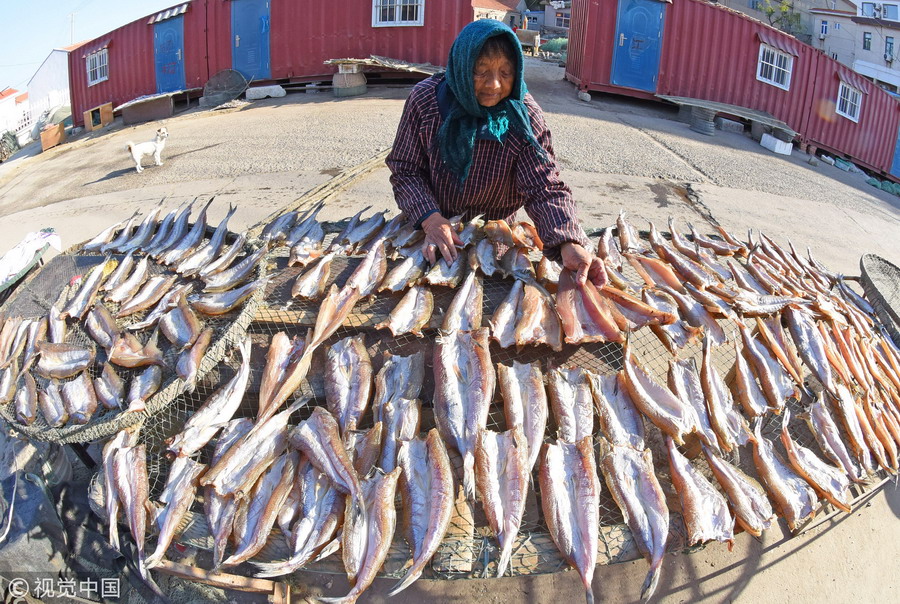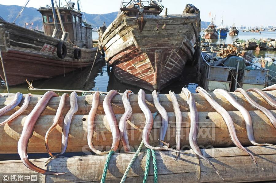金秋時(shí)節(jié),江蘇連云港市沿海秋捕迎來(lái)豐收,漁民們將捕獲的鯧魚、鰻魚、小黃魚、烏賊等經(jīng)過(guò)腌制、晾曬加工成魚干,海島處處呈現(xiàn)出一派豐收景象。