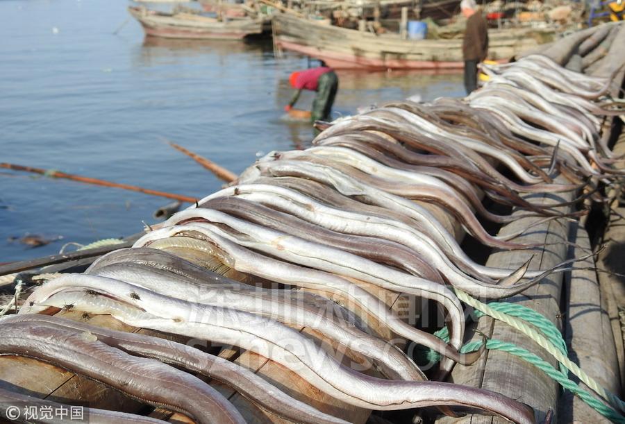 金秋時(shí)節(jié),江蘇連云港市沿海秋捕迎來豐收,漁民們將捕獲的鯧魚、鰻魚、小黃魚、烏賊等經(jīng)過腌制、晾曬加工成魚干,海島處處呈現(xiàn)出一派豐收景象。