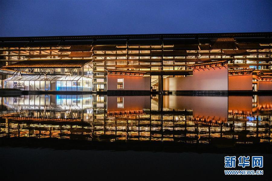 11月6日,夜色中的烏鎮(zhèn)互聯(lián)網(wǎng)國際會展中心。 新華社記者徐昱攝