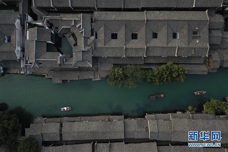 這是10月31日無人機拍攝的烏鎮(zhèn)西柵景區(qū)。 新華社記者黃宗治攝
