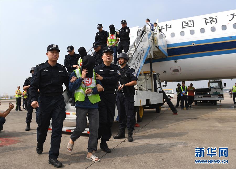 當(dāng)日,一架從菲律賓起飛的中國民航包機(jī)抵達(dá)深圳寶安機(jī)場,36名利用網(wǎng)絡(luò)刷單實施電信網(wǎng)絡(luò)詐騙的犯罪嫌疑人被集中押解回國。涉及全國多個?。▍^(qū)、市)的700余起電信網(wǎng)絡(luò)詐騙案宣布告破,涉案金額1800余萬元。 新華社記者毛思倩攝
