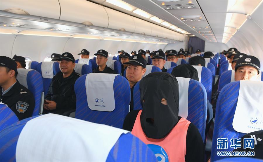 11月7日,涉及到吉林部分網(wǎng)絡(luò)詐騙案件的14名犯罪嫌疑人繼續(xù)乘坐包機被押解回吉林接受處理。新華社記者毛思倩攝