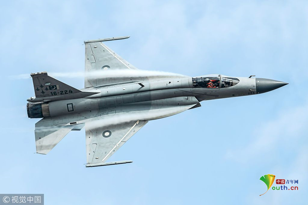 圖四:2018年11月6日,廣東珠海航展上,一架巴基斯坦空軍梟龍戰(zhàn)機進行飛行表演。