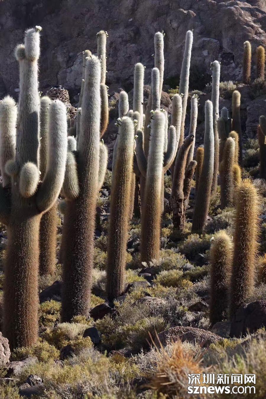 深圳新聞網(wǎng)訊 烏尤尼鹽沼中,有一個(gè)孤立的小山頭,猶如瀚海中的小島。島上長(zhǎng)滿巨大的仙人柱,據(jù)說(shuō)有的已經(jīng)生長(zhǎng)了上千年。這種形狀各異、耐鹽堿、耐干旱的熱帶植物豐富了鹽沼的風(fēng)光,構(gòu)成絕無(wú)僅有的世界奇觀。 李仁奇 攝
