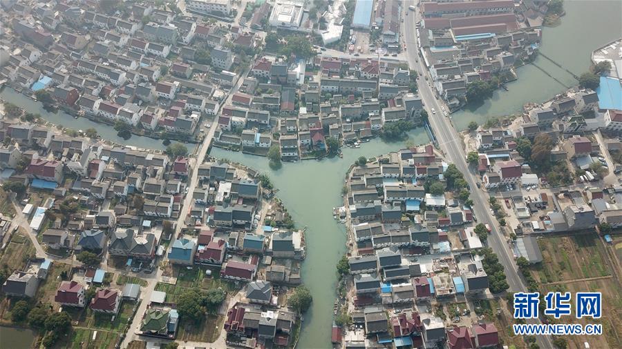 蘇州市吳江區(qū)七都鎮(zhèn)開弦弓村村貌(10月23日無(wú)人機(jī)拍攝)。近年來(lái),開弦弓村形成了化纖紡織、針織衫編織和水產(chǎn)養(yǎng)殖三大產(chǎn)業(yè),2017年村集體收入268萬(wàn)元,農(nóng)民人均可支配收入3萬(wàn)多元。