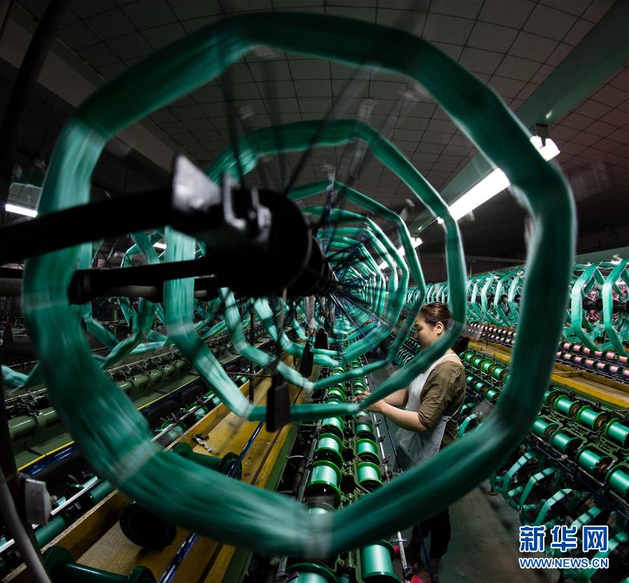 蘇州市吳江區(qū)盛澤鎮(zhèn)一家絲綢公司的工人在車間進行絡(luò)絲作業(yè)(2017年5月20日攝)。 新華社記者 李響 攝