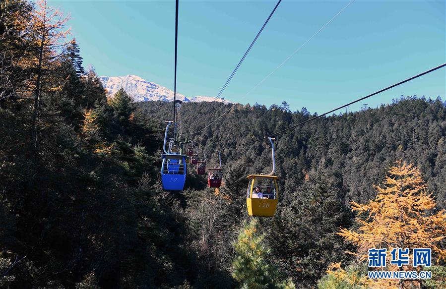 11月10日,游客乘坐纜車觀賞麗江玉龍雪山風(fēng)光。 新華社記者楊宗友攝
