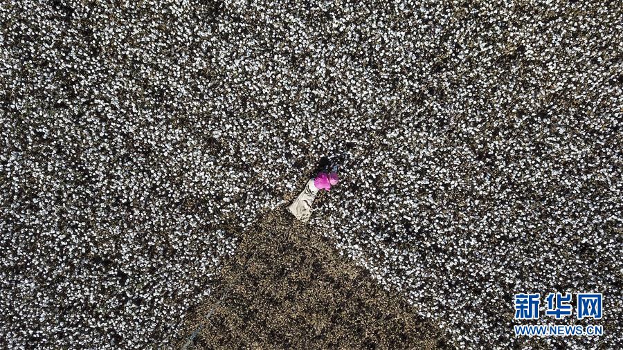 10月21日,棉農(nóng)在棉田采收棉花。目前,河北省南宮市40萬(wàn)畝棉花迎來(lái)采收季。新華社記者朱旭東攝