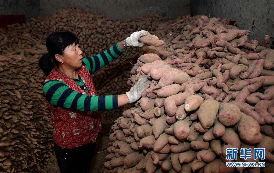 10月17日,陜西延安甘谷驛鎮(zhèn)史家溝村村民在整理剛收獲的紅薯。 金秋時(shí)節(jié),農(nóng)民們忙著收獲成熟的農(nóng)作物,喜迎豐收。 新華社記者 劉瀟 攝