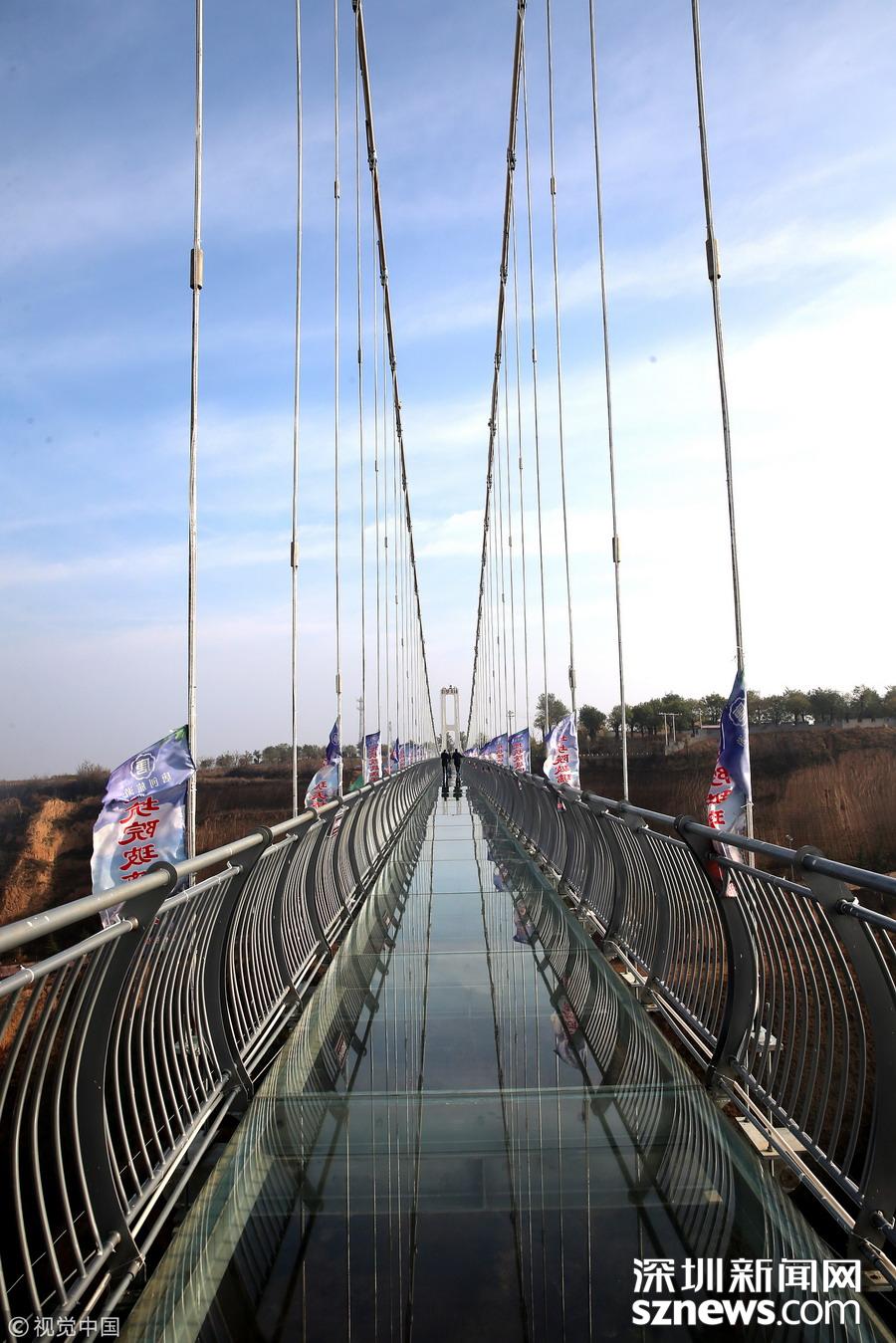 深圳新聞網(wǎng)訊 河南三門峽,位于陜州地坑院景區(qū)玻璃天橋。該項(xiàng)目橋梁總投資2600萬(wàn)元,全長(zhǎng)368米,寬3米,高108米,是目前河南省內(nèi)最長(zhǎng)的玻璃天橋,還將陸續(xù)對(duì)外開(kāi)放夜景效果、聲光效果以及更多的體驗(yàn)效果,逐步打造成整個(gè)豫西地區(qū)乃至全省的旅游打卡新地標(biāo)。