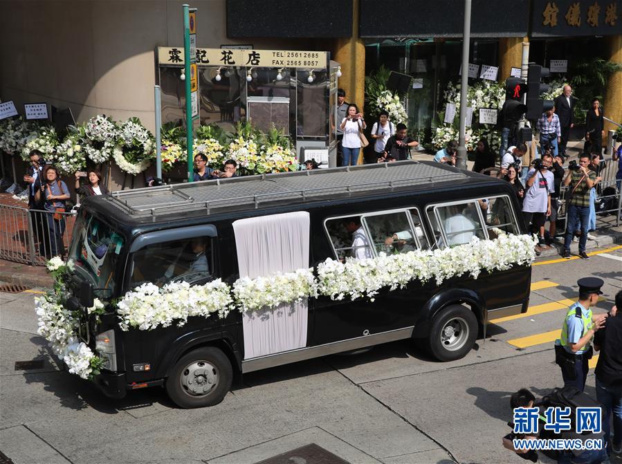 11月13日,金庸的靈車緩緩駛離殯儀館。 當日,著名作家金庸在香港殯儀館出殯。 金庸10月30日在香港逝世,享年94歲。 新華社記者 吳曉初 攝