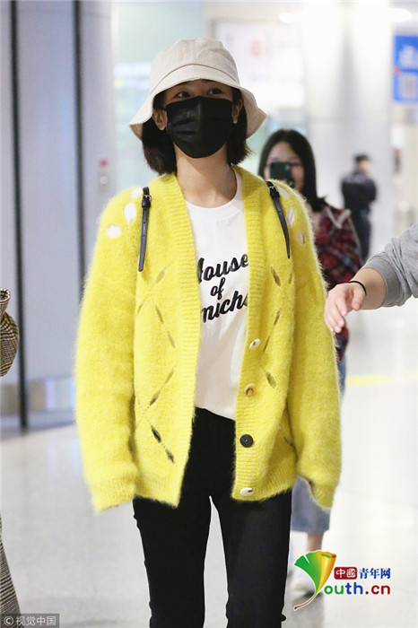 日前,楊紫現(xiàn)身長(zhǎng)沙黃花機(jī)場(chǎng),她頭戴漁夫帽的她口罩遮面,身著鮮黃針織衫相當(dāng)搶眼,一路獲粉絲跟拍。