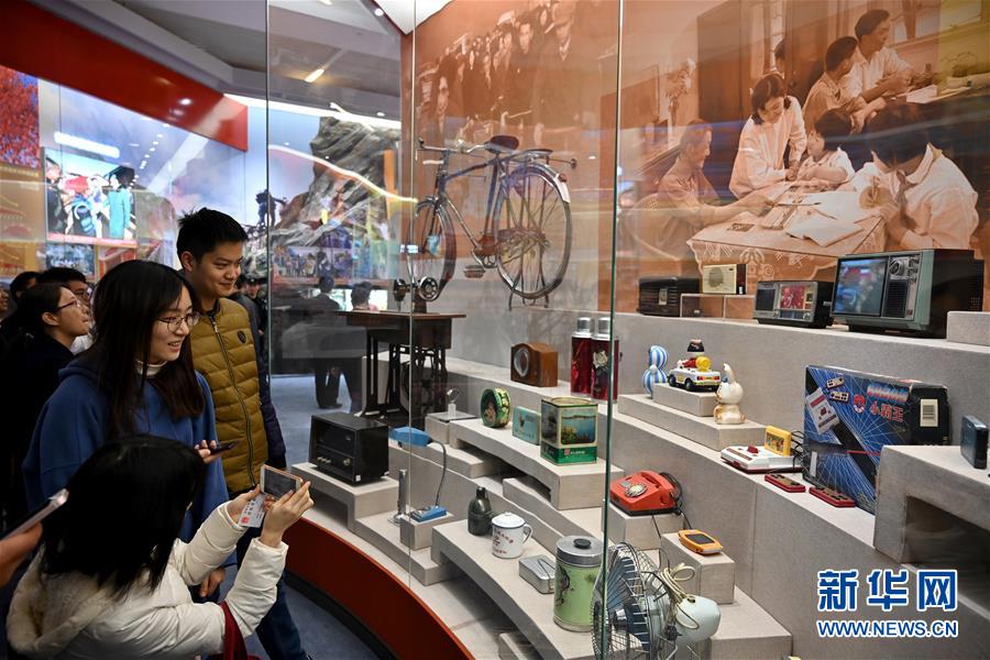 11月15日,參觀者在“歷史巨變”展區(qū)觀看生活用品陳列。