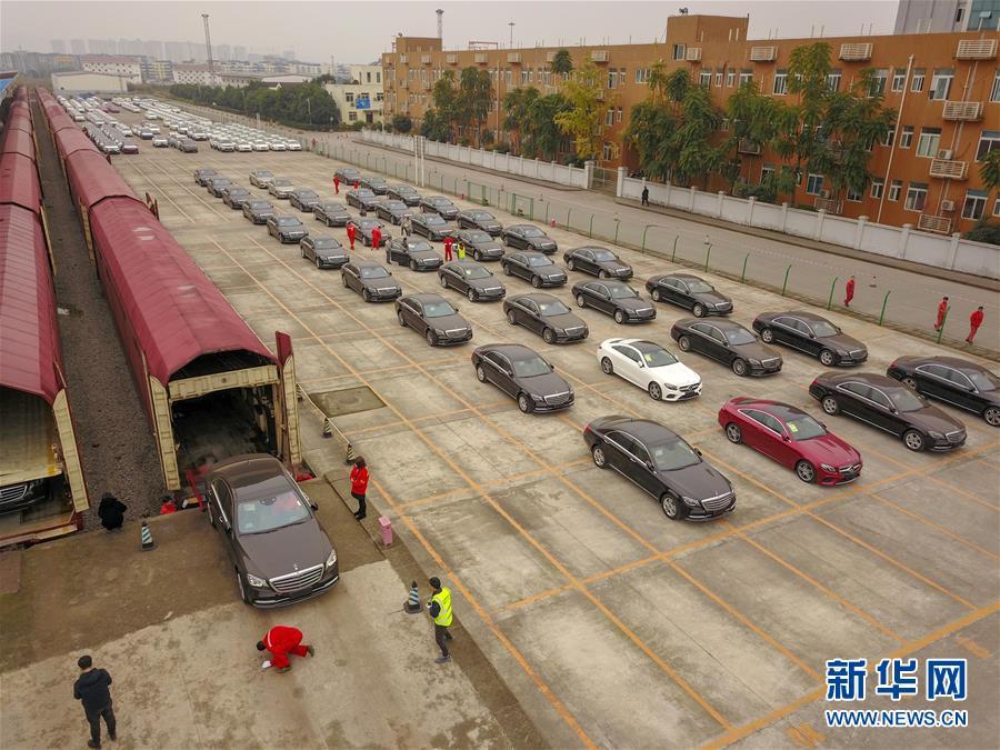 當(dāng)日,首趟中歐班列商品車專用車運(yùn)輸國際班列搭載的112臺(tái)奔馳品牌進(jìn)口整車在重慶順利完成通關(guān)。