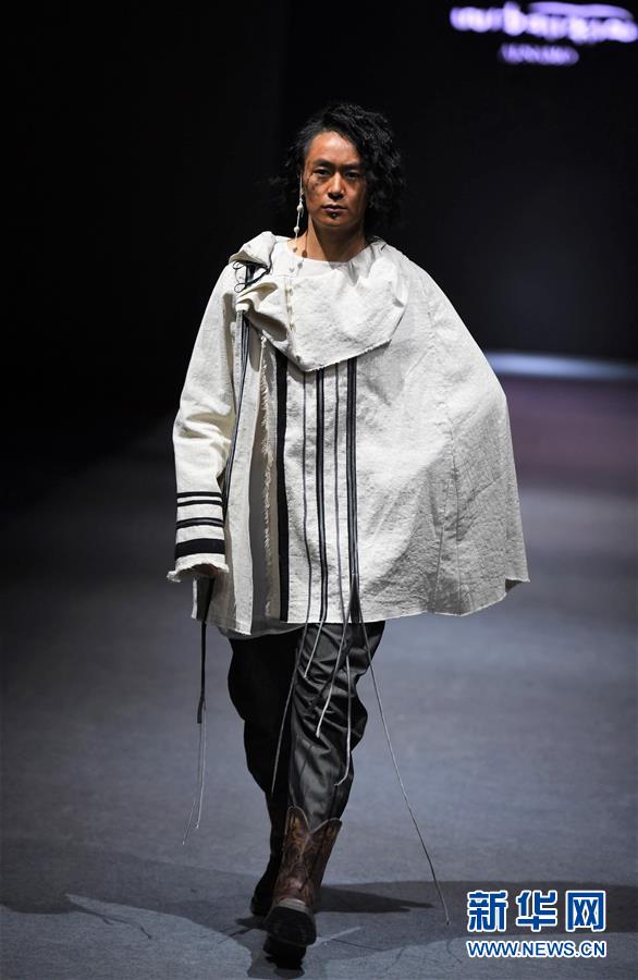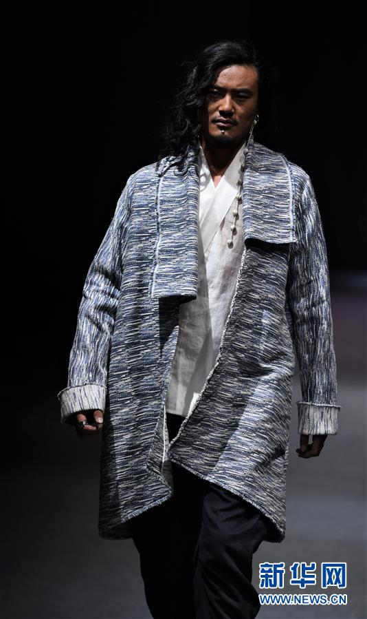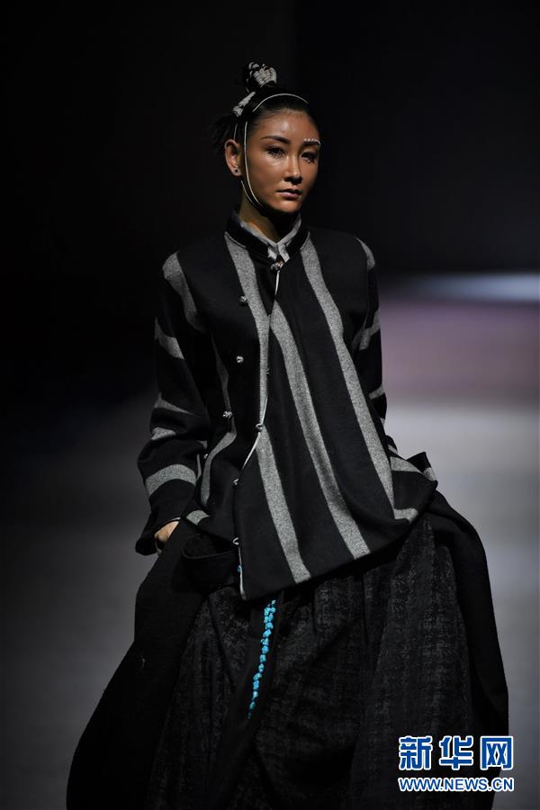 模特在AJ-NAMO藏裝秀上展示藏族設(shè)計師阿佳娜姆設(shè)計的時裝(11月18日攝)。