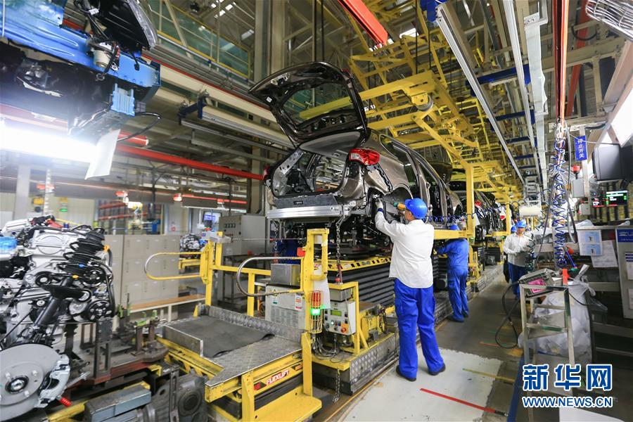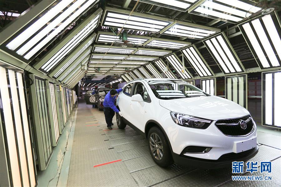 在上汽通用東岳汽車有限公司的總裝車間,工作人員在裝配流水線上作業(yè)(11月15日攝)。新華社記者王南攝