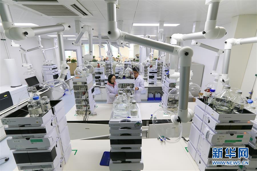 在綠葉制藥集團的研發(fā)中心,實驗人員進(jìn)行樣品分析(11月15日攝)。新華社記者王南攝