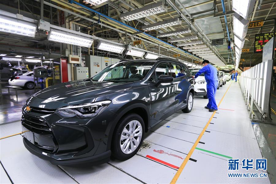 在上汽通用東岳汽車有限公司的總裝車間,工作人員對車輛進行檢查(11月15日攝)。新華社記者王南攝