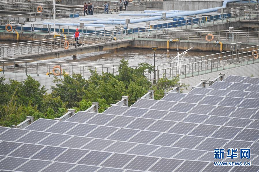 這是11月20日拍攝的福建省石獅市中心區(qū)城市污水處理廠處理池上的分布式光伏發(fā)電項目。 新華社記者 宋為偉 攝