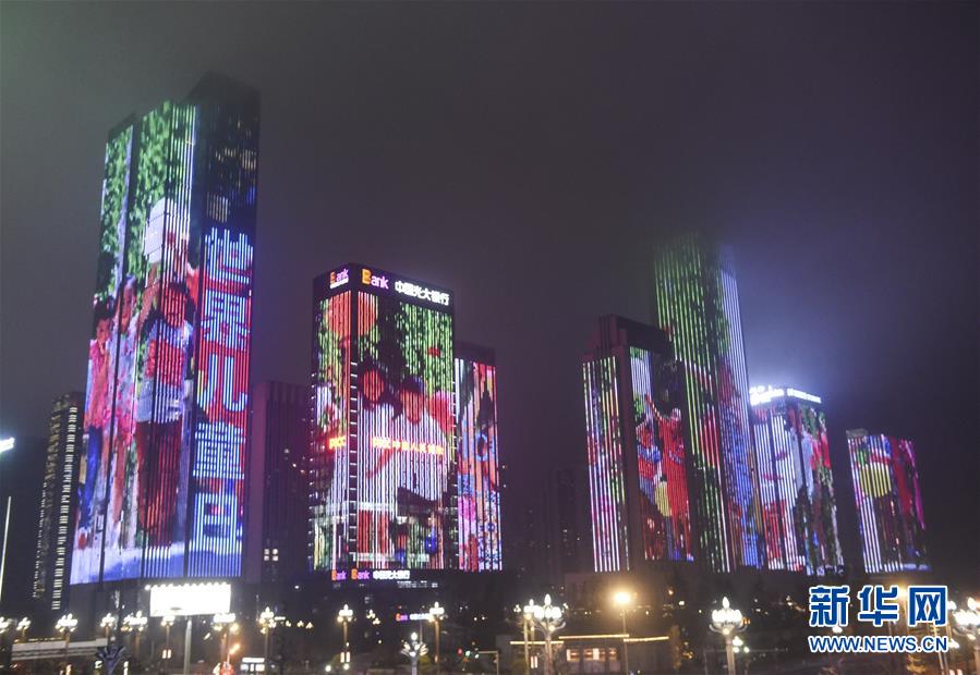 11月20日,貴陽市舉辦世界兒童日主題活動(dòng),觀山湖區(qū)金融城的大樓被點(diǎn)亮。 新華社記者 陶亮 攝