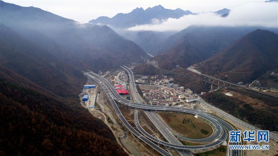 11月20日拍攝的水陽(yáng)高速公路與包茂高速公路相接的樞紐互通式立交(無人機(jī)拍攝)。 近日,記者從陜西省交通建設(shè)集團(tuán)公司了解到,陜西柞水至山陽(yáng)高速公路已全線貫通即將通車。據(jù)介紹,(柞)水(山)陽(yáng)高速公路全長(zhǎng)78.8公里,開通后將實(shí)現(xiàn)包茂高速、福銀高速在陜南商洛地區(qū)的連接,開辟出秦嶺南麓的一條橫向高速大通道,對(duì)完善陜西高速公路路網(wǎng)結(jié)構(gòu)、促進(jìn)陜南區(qū)域經(jīng)濟(jì)發(fā)展、加快山區(qū)群眾脫貧致富具有重要意義。 新華社記者劉瀟攝