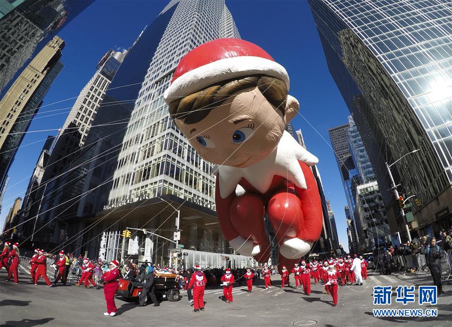 11月22日,在美國(guó)紐約感恩節(jié)大游行上,“書架精靈”造型氣球行進(jìn)在曼哈頓街頭。