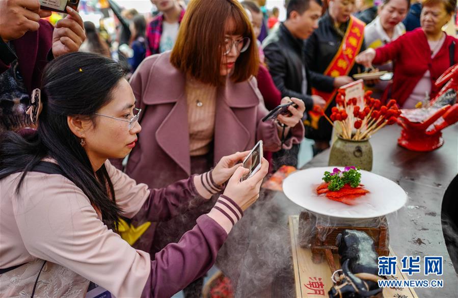 10月19日,重慶火鍋美食文化節(jié)現(xiàn)場(chǎng)展出的各色火鍋菜品吸引眾人拍攝。 當(dāng)日,第十屆中國(重慶)火鍋美食文化節(jié)在重慶市江北區(qū)正式開幕。本屆火鍋美食文化節(jié)為期4天,以“麻辣happy城市節(jié)日”為主題,50000平方米的展區(qū)吸引了70余個(gè)火鍋品牌、300余家火鍋供應(yīng)鏈企業(yè)參展,萬人同燙火鍋的盛況在“火鍋之都”重慶再現(xiàn)。 新華社記者 劉潺 攝