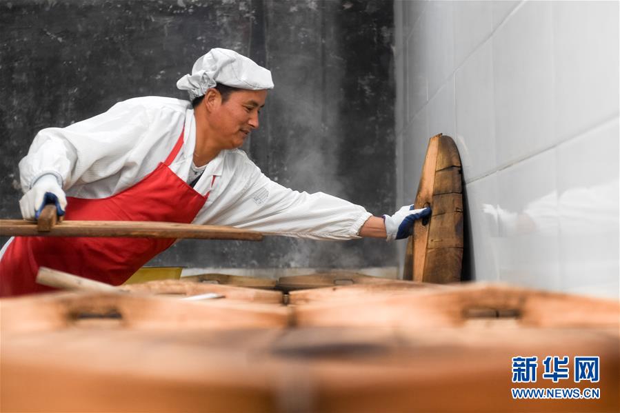 11月22日,汪明祥在鍋巴廠里加工鍋巴。新華社記者劉軍喜攝