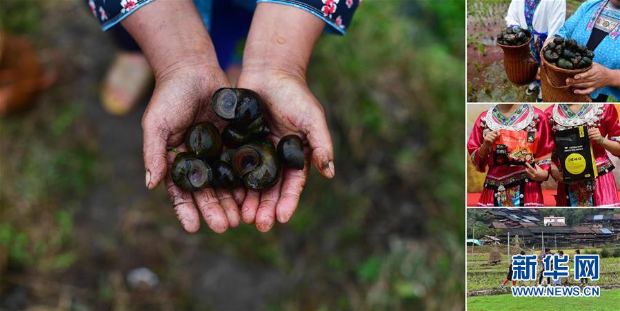 拼版照片:左圖為在拱洞鄉(xiāng)龍令村,貧困戶龍亞手捧剛剛收獲的田螺(11月17日攝);右上圖為龍亞展示收獲的田螺(11月17日攝);右中圖為龍令村養(yǎng)殖的田螺已經(jīng)成為柳州螺螄粉的原材料(10月28日攝);右下圖為龍亞(右一)在稻田里撈田螺(11月17日攝)。今年,拱洞鄉(xiāng)大力發(fā)展稻田養(yǎng)螺產(chǎn)業(yè),目前,全鄉(xiāng)田螺養(yǎng)殖面積突破4000畝,參與的貧困農(nóng)戶有600多戶。 廣西融水苗族自治縣是國家扶貧工作重點縣,全縣“九山半水半分田”,生活生產(chǎn)環(huán)境較為惡劣,脫貧攻堅任務(wù)艱巨,目前還有7.68萬貧困人口。面對經(jīng)濟發(fā)展落后、貧困面廣且程度深的現(xiàn)狀,當(dāng)?shù)匕衙撠毠耘c創(chuàng)新產(chǎn)業(yè)扶持相結(jié)合,依托生態(tài)資源優(yōu)勢,實施“特色產(chǎn)業(yè)富民行動”,通過發(fā)展特色民族旅游、林下經(jīng)濟和特色養(yǎng)殖業(yè)等扶貧產(chǎn)業(yè),帶動貧困群眾依靠勤勞的雙手,拔窮根摘窮帽,實現(xiàn)脫貧致富。據(jù)了解,目前全縣貧困戶參與特色產(chǎn)業(yè)發(fā)展的有2.9萬戶,扶貧產(chǎn)業(yè)覆蓋率達95%。 新華社記者 黃孝邦 攝