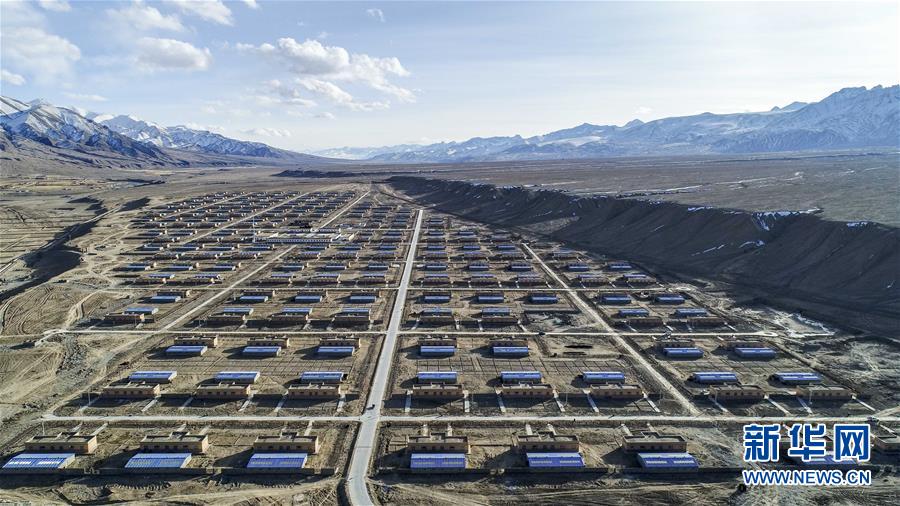 這是塔什庫爾干塔吉克自治縣塔提庫力易地扶貧搬遷安置點(11月19日無人機拍攝)。新華社記者胡虎虎攝