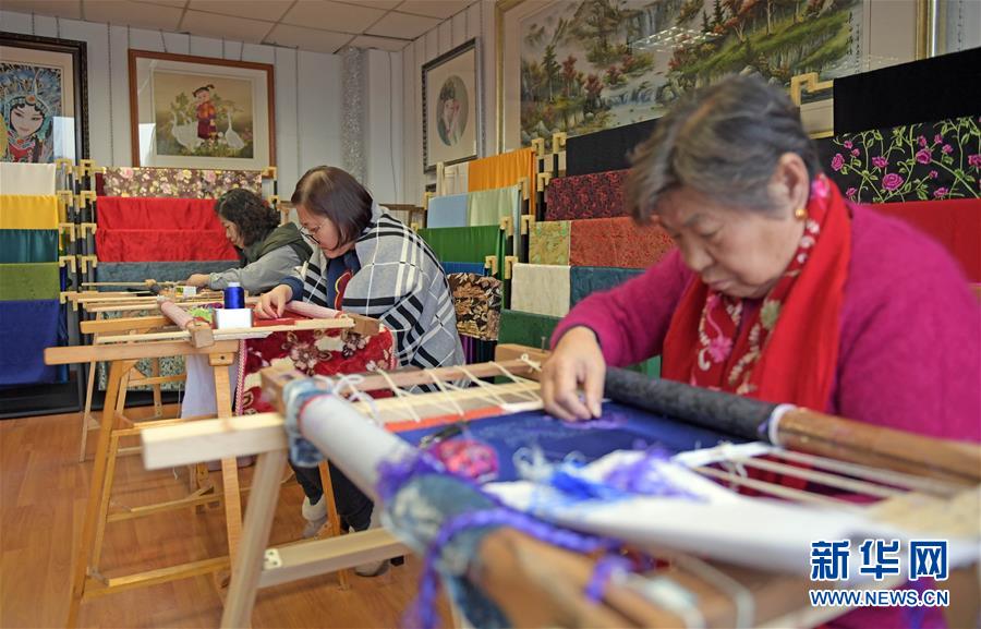 11月23日,繡娘在盛京滿(mǎn)繡工作室工作。新華社記者楊青攝