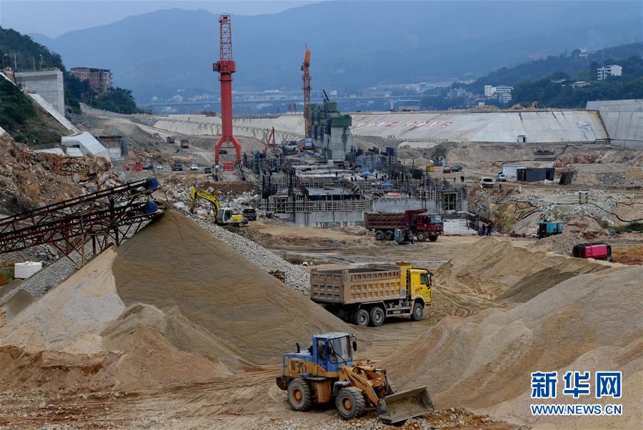 11月23日,建設(shè)者在福建閩江水口水電站壩下工程工地加緊施工。