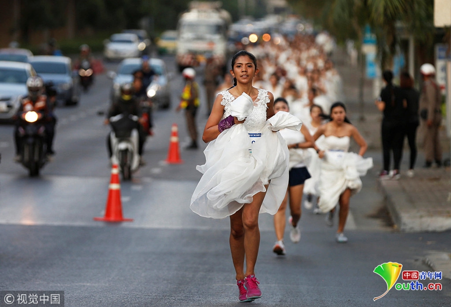 泰國新娘賽跑爭免費(fèi)婚禮 新娘街頭提裙狂奔