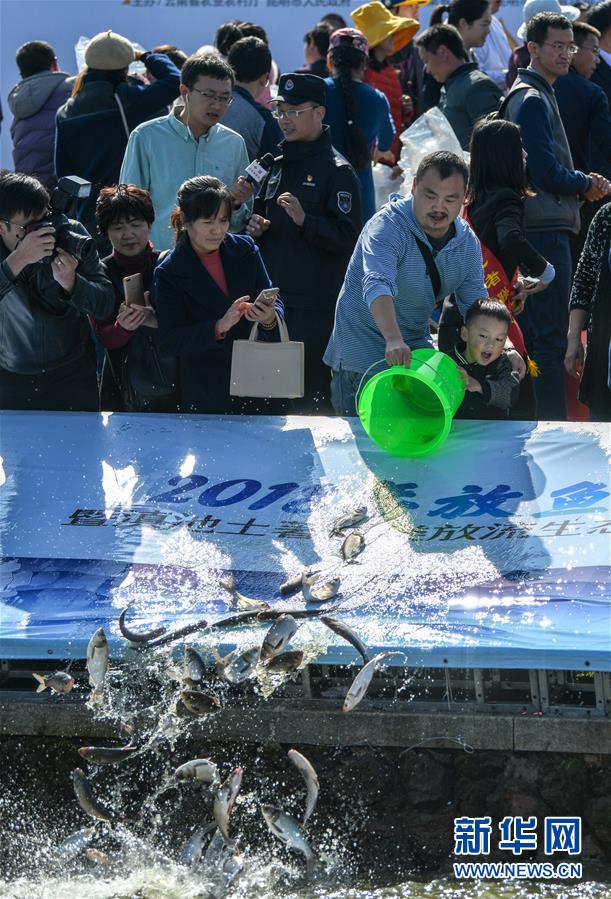 當(dāng)日,“2018放魚滇池暨滇池土著魚類放流生態(tài)保護(hù)行動”在昆明滇池湖畔舉行,包括20萬尾滇池金線鲃、云南光唇魚在內(nèi)的滇池土著魚類以及5萬余尾鰱、鳙魚在滇池放流。 據(jù)統(tǒng)計(jì),滇池最多的時候生活著24種土著魚,目前除了銀白魚自然存在外,2010年實(shí)現(xiàn)了滇池金線鲃的人工增殖放流,2017年又讓云南光唇魚實(shí)現(xiàn)了回歸。 新華社記者江文耀攝