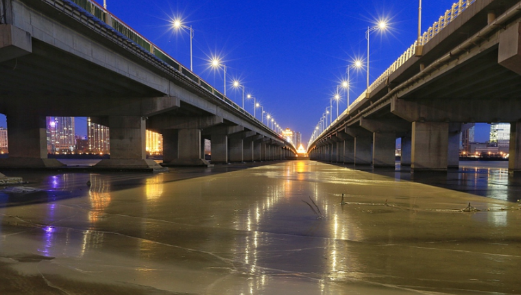 松花江封江 冰面如鏡倒影冰城夜景