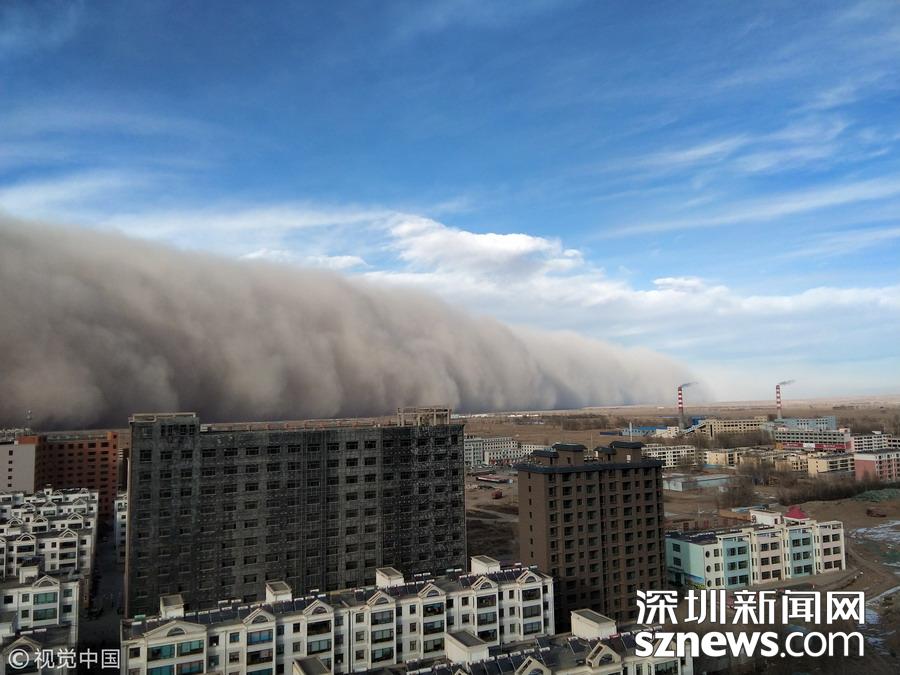 甘肅張掖沙塵暴來襲 “沙墻”高達(dá)上百米