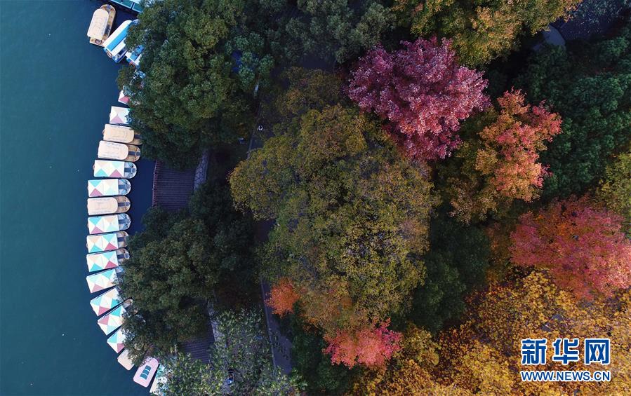 一排游船停泊在湖南烈士公園年嘉湖湖畔(11月25日無人機拍攝)。 新華社記者 李尕攝