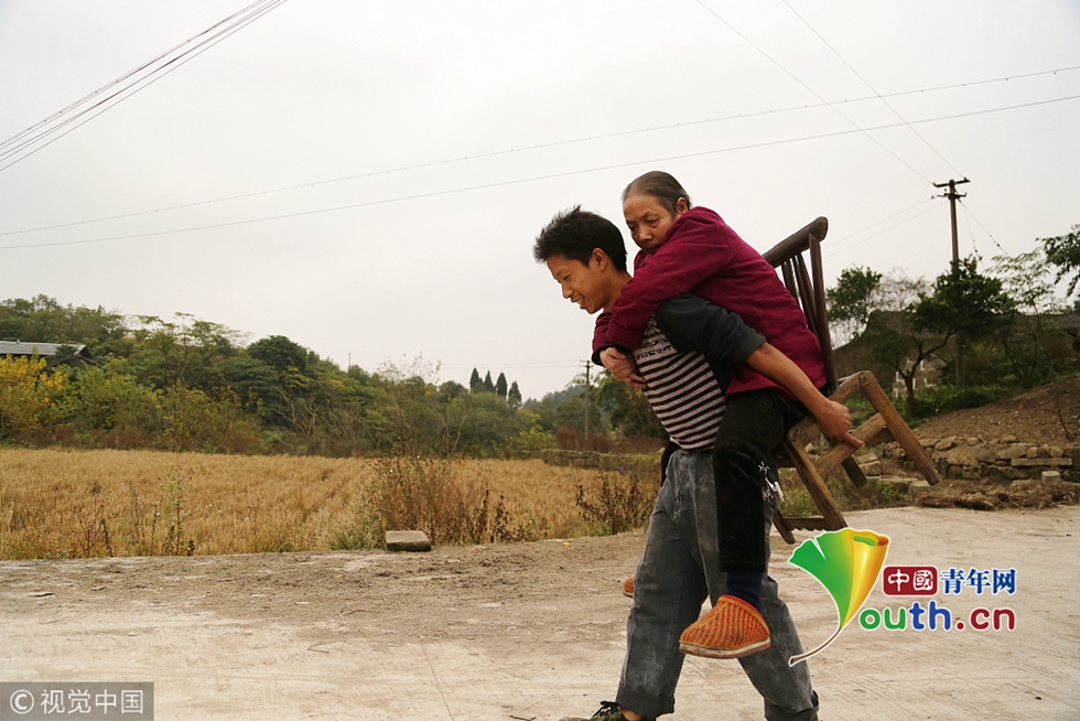 因為要用更多的時間照顧母親,能接受王顯強的企業(yè)并不多,好不容易進了廠,給他的工資也不高?!皦蛄?,只要能養(yǎng)活我和媽媽,我不在乎其他的?!本瓦@樣,王顯強背著母親輾轉重慶主城,打工了15年。