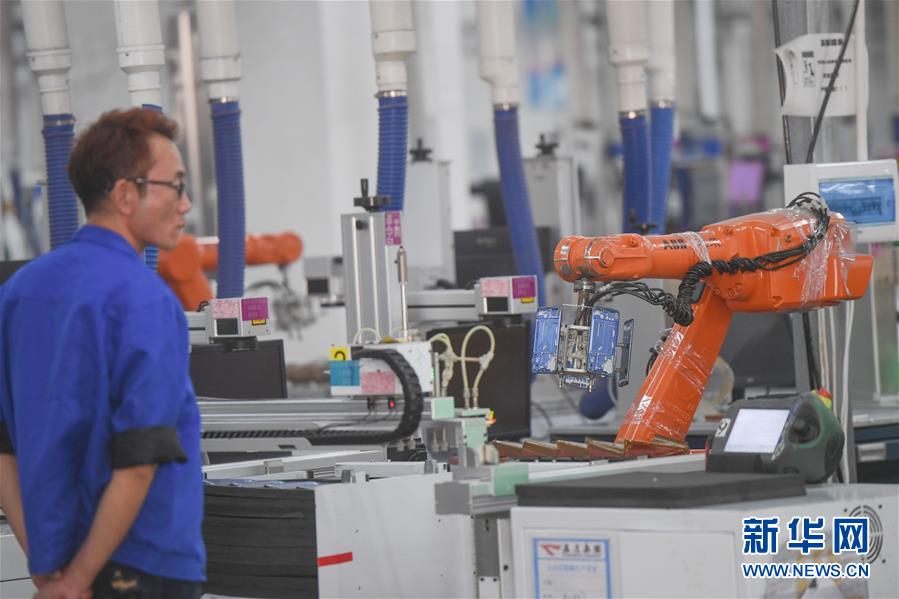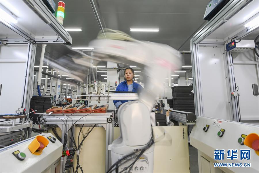 11月29日,在位于福建省石獅市蚶江鎮(zhèn)的通達(dá)集團(tuán)生產(chǎn)車間,工人在智能機(jī)械臂旁實(shí)時監(jiān)控一批小米手機(jī)殼的生產(chǎn)情況。 新華社記者 宋為偉 攝