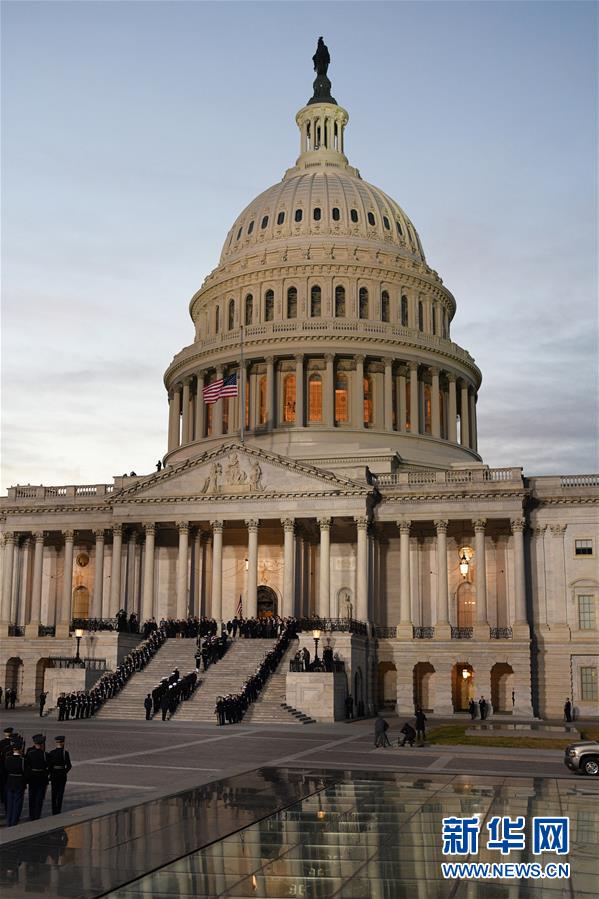 12月3日,在美國(guó)首都華盛頓,美國(guó)前總統(tǒng)喬治·赫伯特·沃克·布什(老布什)的靈柩抵達(dá)國(guó)會(huì)大廈。