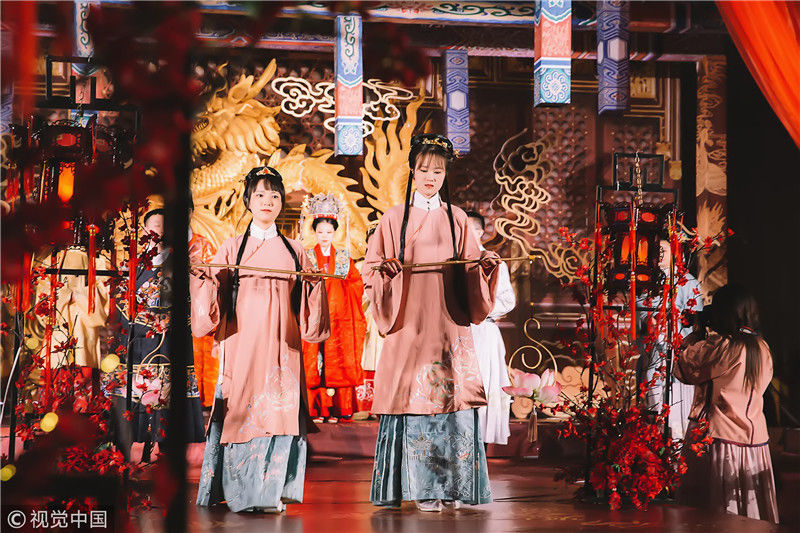 2018年11月18日,浙江嘉興。海寧一位女孩為了籌辦自己的漢婚大禮,囤衣服、囤首飾,準(zhǔn)備整整六年。圖為婚禮現(xiàn)場。周建仕/視覺中國