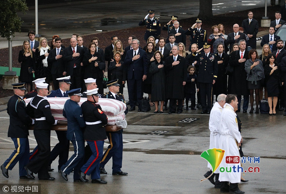 老布什靈柩下葬德州家族墓地 21架F18戰(zhàn)機(jī)編隊(duì)悼念
