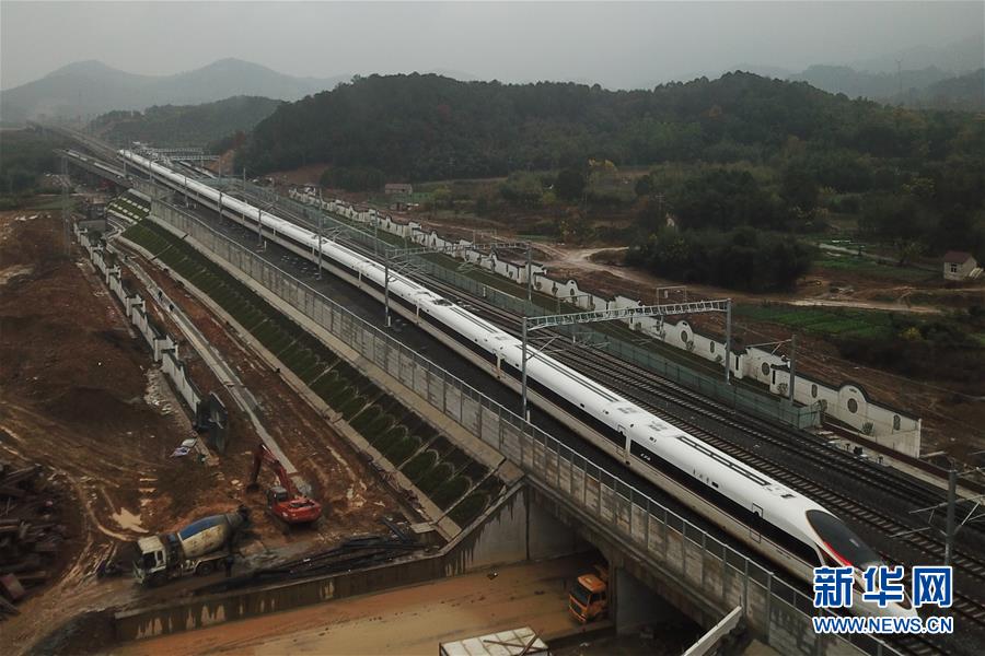 當(dāng)日,兩輛“復(fù)興號(hào)”動(dòng)車組列車首次在處于試運(yùn)行階段的杭黃鐵路上行駛,列車在杭州南站與黃山北站間多次往返“試跑”。 杭黃鐵路連接浙江杭州與安徽黃山,并穿過(guò)富春江、新安江、千島湖等風(fēng)景名勝區(qū)。據(jù)了解,杭黃鐵路計(jì)劃于12月底開(kāi)通運(yùn)營(yíng)。