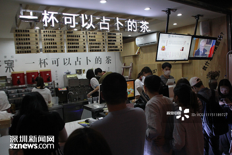 2018年4月21日,重慶,萬(wàn)達(dá)廣場(chǎng)附近有一家新開(kāi)業(yè)的網(wǎng)紅答案茶的冷飲店,這家答案茶冷飲店人氣異?;鸨T(mén)前已排起了兩條“長(zhǎng)龍”。 |