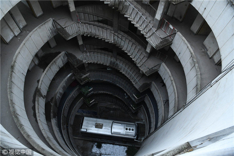 2018年12月6日,重慶江北紅旗河溝汽車站內,有一棟獨特的八層圓環(huán)狀建筑,底層每天有不少進出站的客車通行。