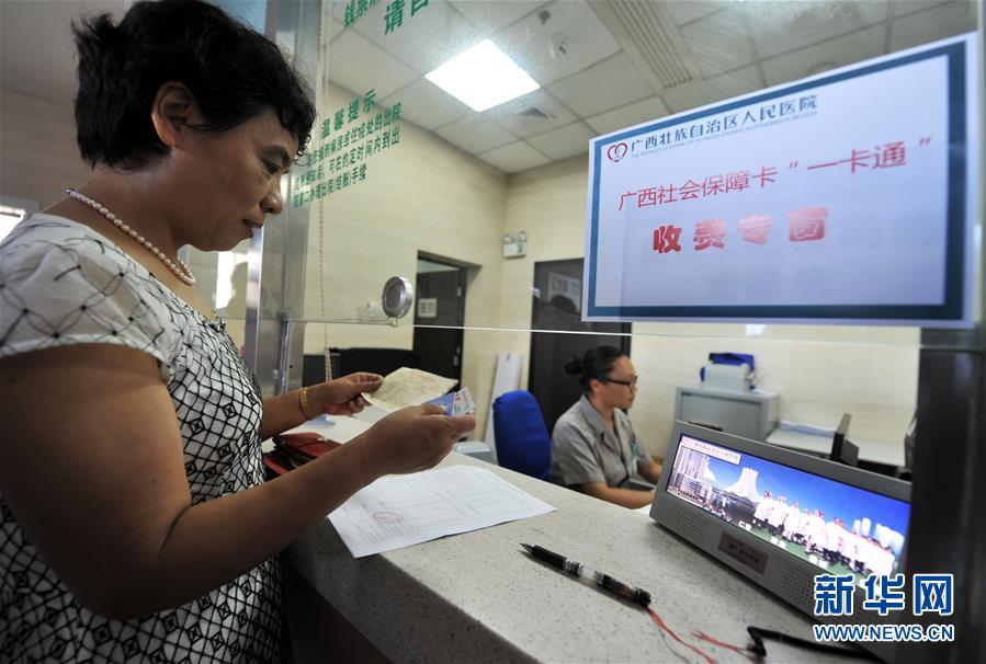 在廣西壯族自治區(qū)人民醫(yī)院,從北海到南寧異地就醫(yī)的鄭曉榮持社會保障卡在結(jié)算醫(yī)藥費(2015年6月30日攝)。 歷史進步的背后,必有堅強領導力量的引領。 “堅持黨的領導,全面從嚴治黨,是改革開放取得成功的關鍵和根本?!绷暯娇倳浛偨Y(jié)改革開放40年歷史和實踐作出這一重要論斷。 歷史關頭,中國共產(chǎn)黨的關鍵抉擇,改變了當代中國的命運; 宏偉征程,中國共產(chǎn)黨帶領億萬人民在改革開放實踐中,實現(xiàn)歷史性跨越; 面向未來,中國共產(chǎn)黨肩負實現(xiàn)中華民族偉大復興的歷史使命,把改革開放繼續(xù)推向前進。 新華社記者李斌攝