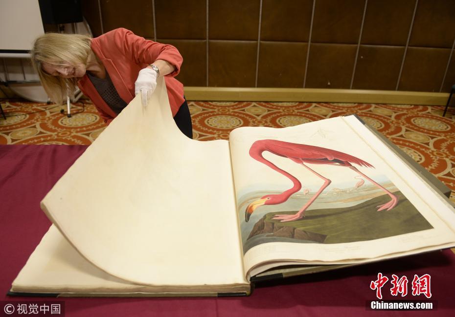 2018年12月12日消息,英國(guó)格拉斯哥,世界上最貴的印刷書(shū)——美國(guó)鳥(niǎo)類(lèi)學(xué)家、畫(huà)家和博物學(xué)家詹姆斯·奧杜邦手繪的第一版《美國(guó)鳥(niǎo)類(lèi)》被罕見(jiàn)取出米切爾圖書(shū)館保險(xiǎn)庫(kù)公開(kāi)亮相。圖片來(lái)源:視覺(jué)中國(guó)
